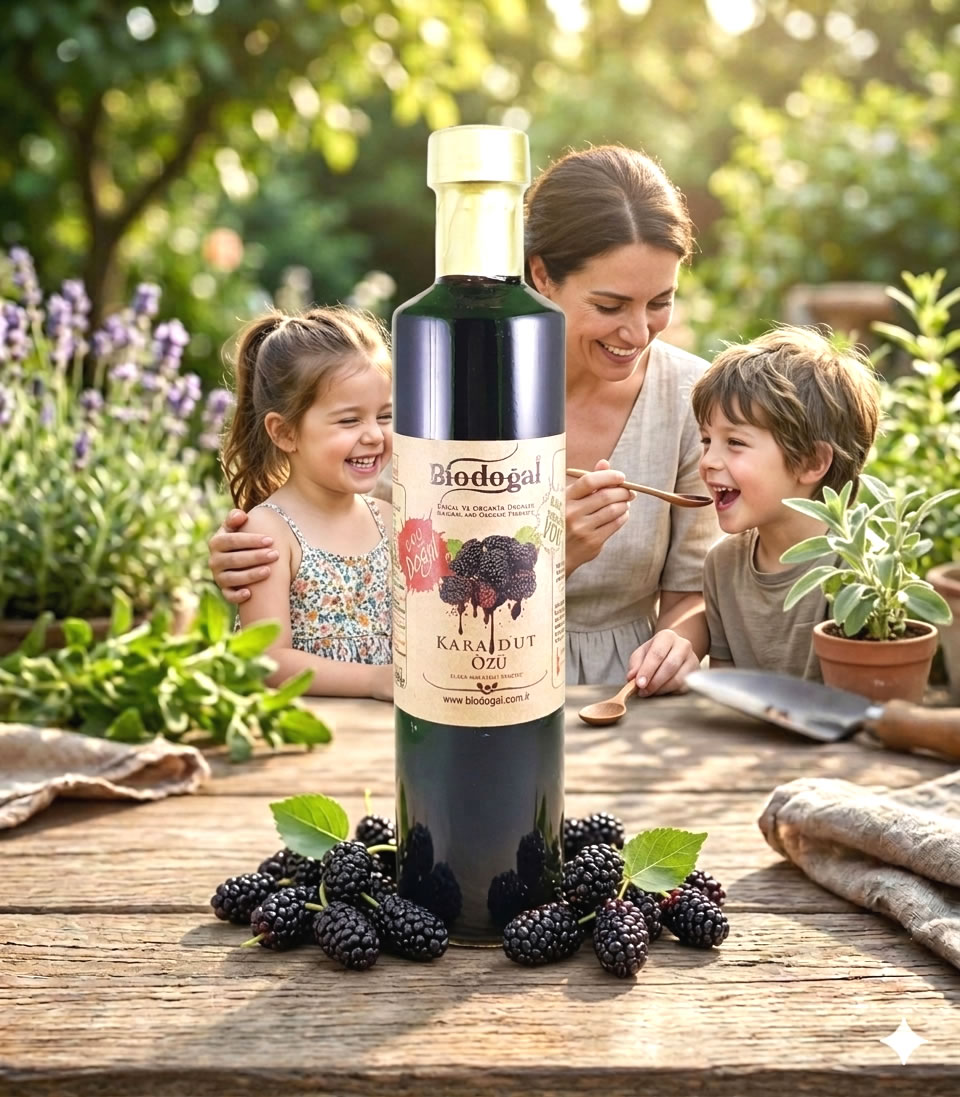 Enfes aromalı karadut meyvesi son teknoloji makinalarda el değmeden parçalanıp geniş yüzeyli kazanlara doldurulmuştur.